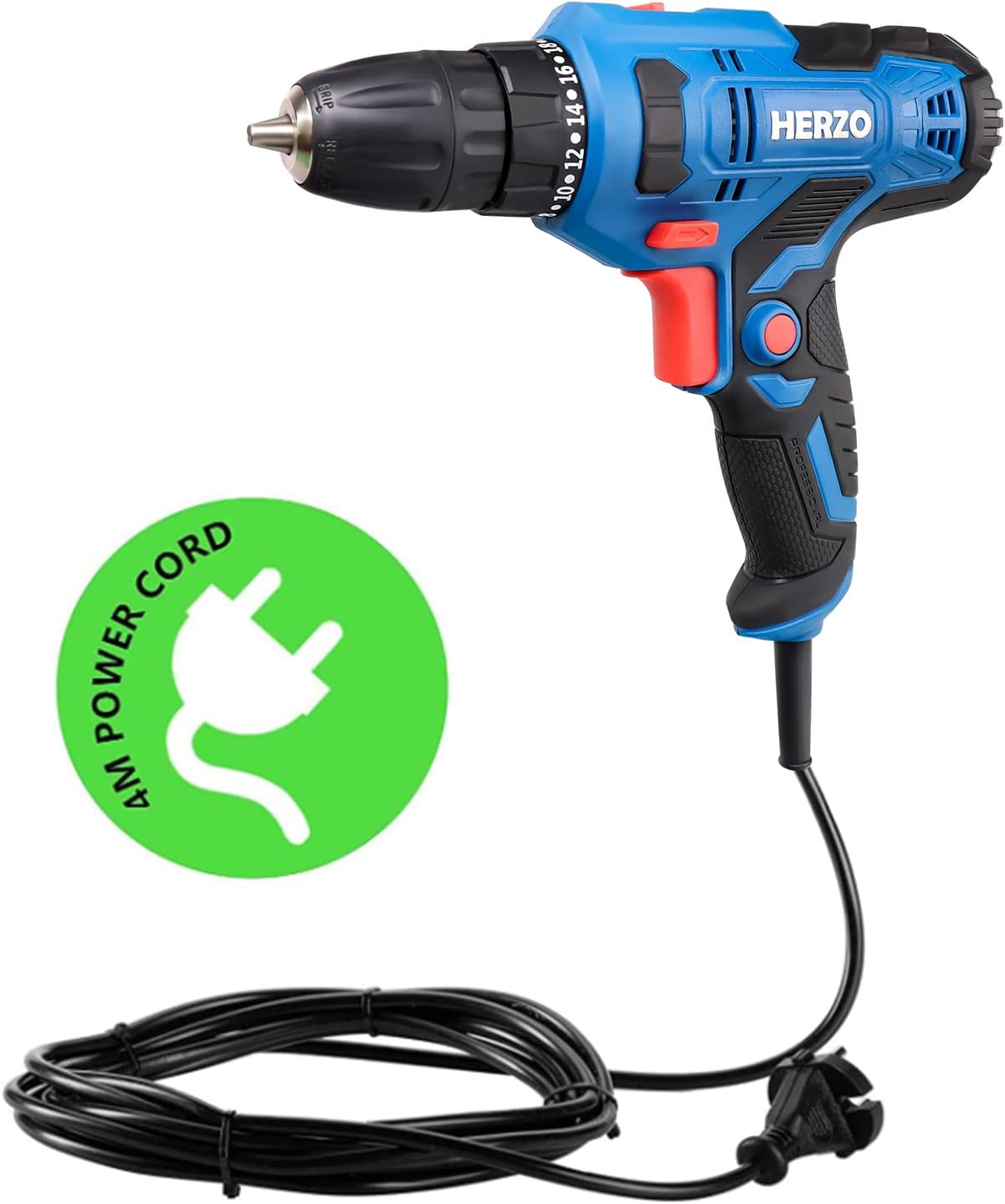 HERZO Electric drill 300 W, speed 20 + 1 torque levels with 4 m cable, great for everyday drilling tasks.